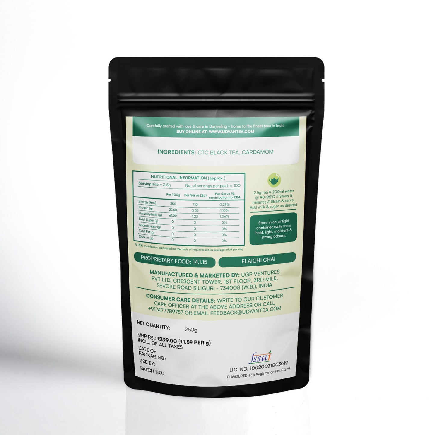 Immerse yourself in the essence of tradition with our Elaichi CTC Chai, where the bold CTC black tea meets the fragrant cardamom. Our tea masters created this exquisite blend that captures the heart of India’s tea culture which offers the taste of classic Indian chai. The strong, malty base, perfectly complemented by the aromatic richness of cardamom, resonates with the evening tea session’s aroma of every Indian home. The cardamom infuses the tea with its warm, spicy notes and a subtle hint of sweetness that soothes the senses. Each cup of Elaichi CTC Chai is a journey through a world of bold flavors and fragrant spices, delivering a delightful exploration of traditional Indian tea. Enjoy it brewed with milk and sugar for a classic sweetness, the tea gives a comforting experience that’s perfect for any time of day.