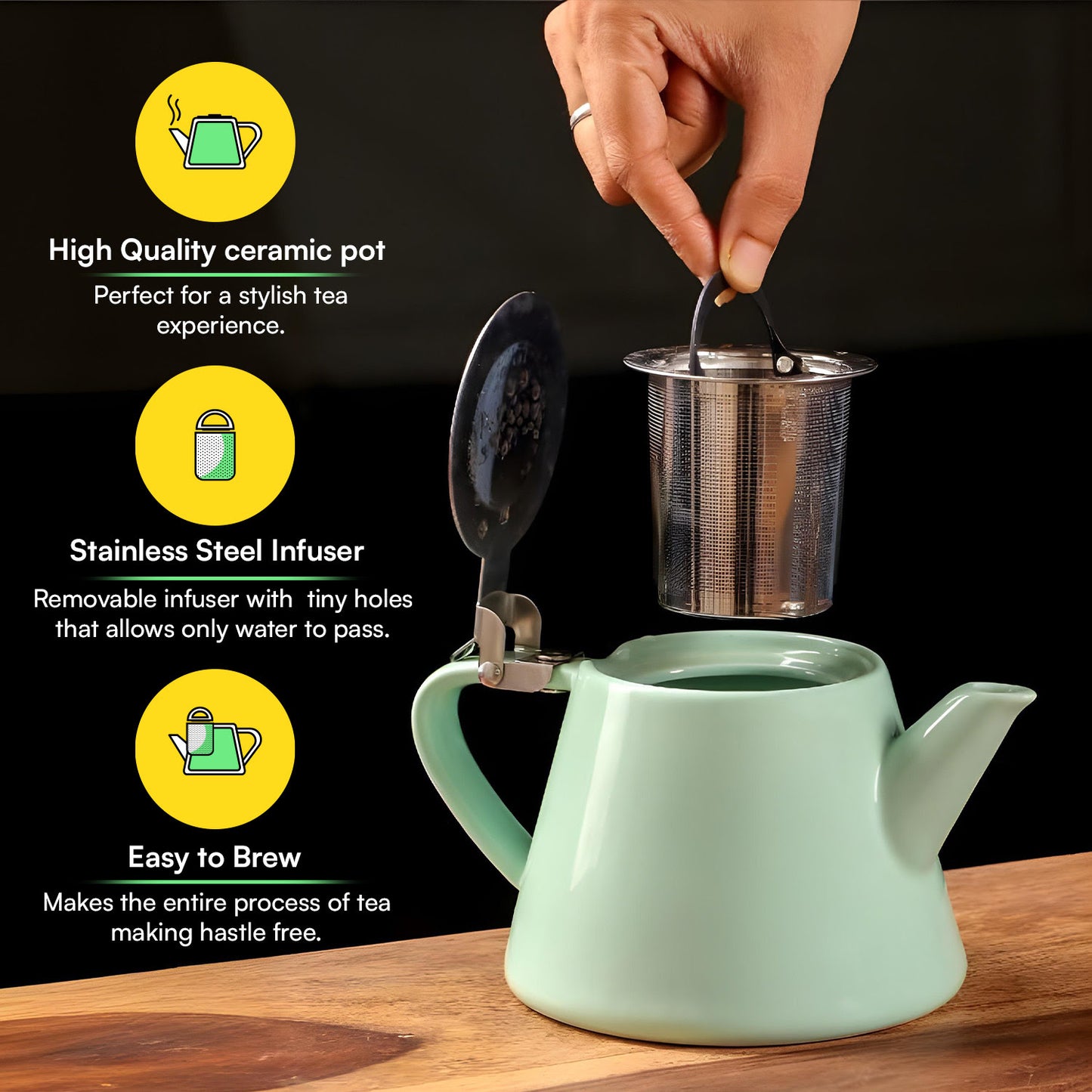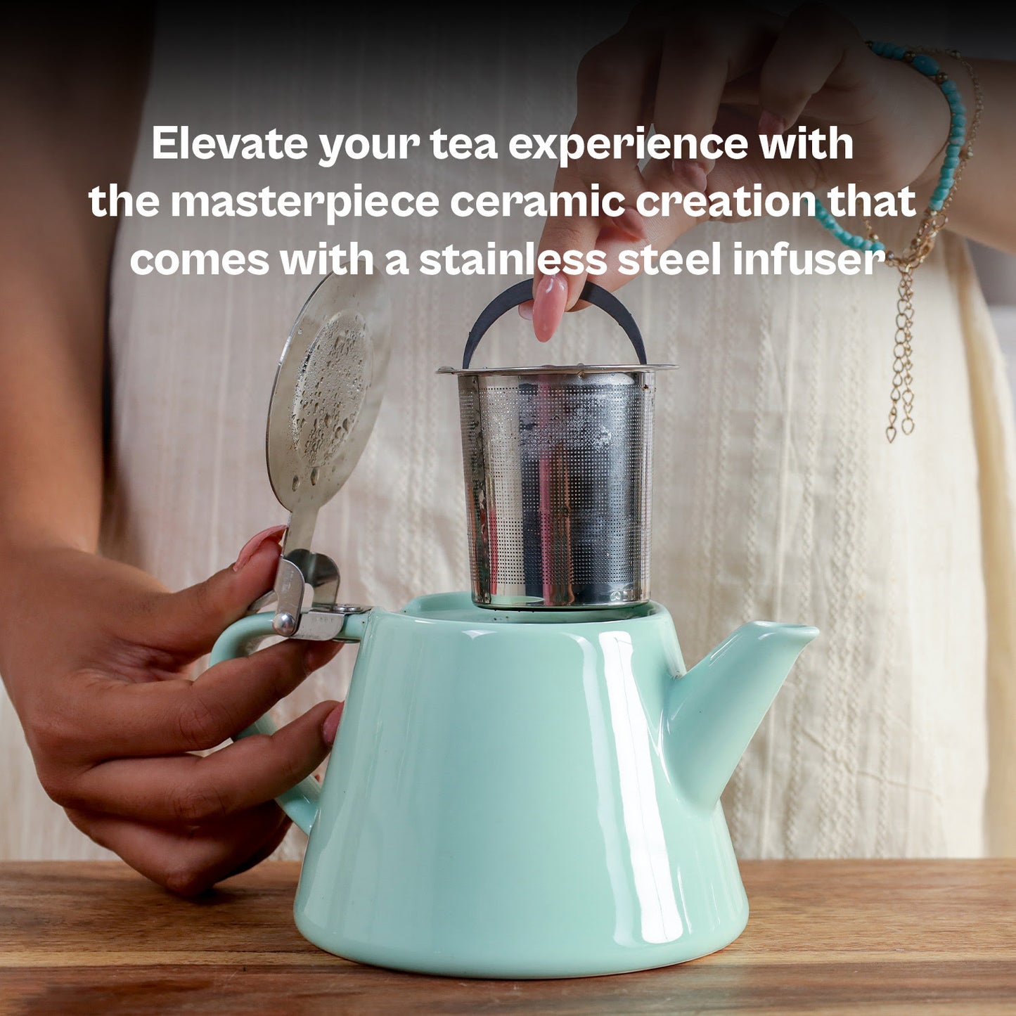 Elevate your tea experience with the masterpiece ceramic creation that comes with a stainless steel infuser
